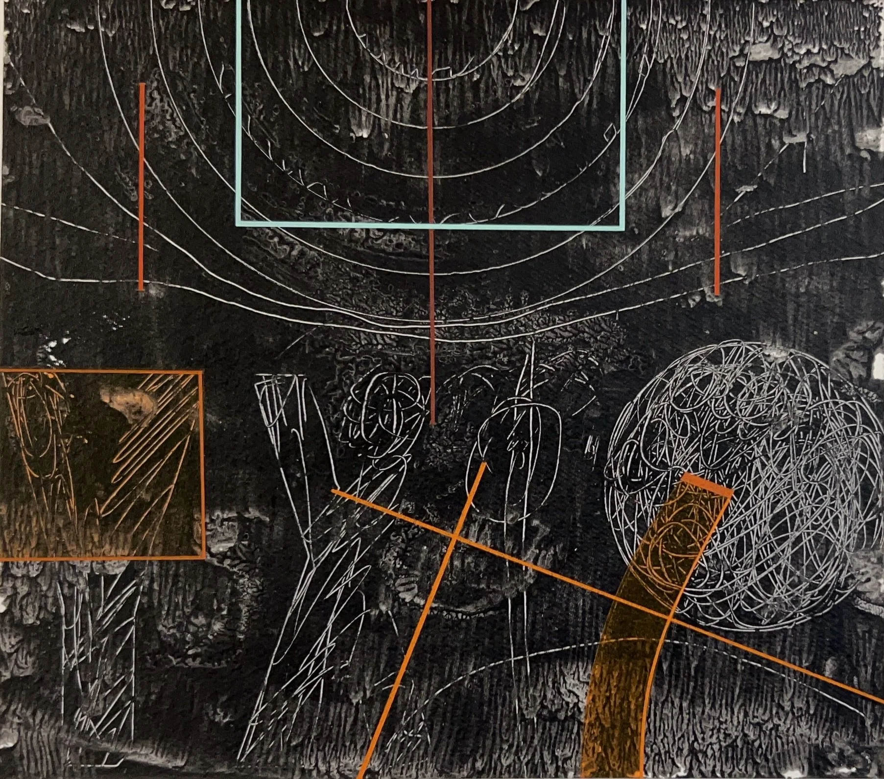 Line Drawings, 2024-2025; acrylic on 300# Fabriano; image 8x9 inches, paper 11x13 inches